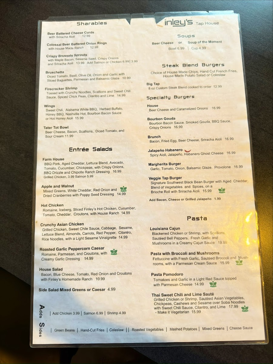 Introducing Finley's Tap House, located at 3236 Ginger Creek Dr in Springfield, IL, this vibrant spot is a culinary gem for food enthusiasts. Known for its diverse menu, Finley's offers an enticing selection of handhelds that include the flavorful Nashville Hot Chicken Handheld and the savory Finley's Bacon Cheddar Chicken, priced between $19.10 and $23.90. Sides like French Fries and Gouda Mashed complement your meal perfectly, with prices starting as low as $4.67.